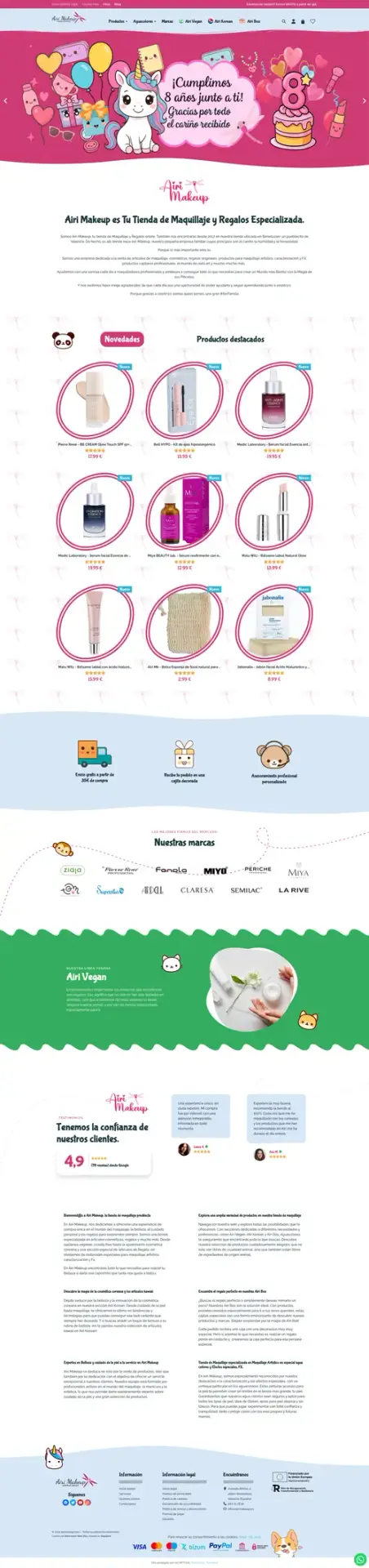 Creación de una página web para una tienda de maquillaje, enfocada a mostrar productos y mejorar la experiencia de compra. Web a medida, optimizada para SEO y orientada a aumentar la visibilidad y las ventas online.