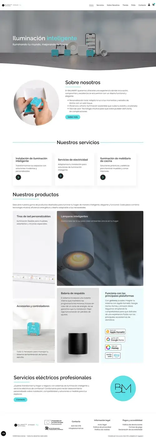 Diseño de una web corporativa para una empresa de iluminación inteligente, enfocada a mostrar soluciones tecnológicas y servicios. Web a medida, optimizada para SEO y pensada para reforzar la imagen innovadora del negocio y la captación de clientes.
