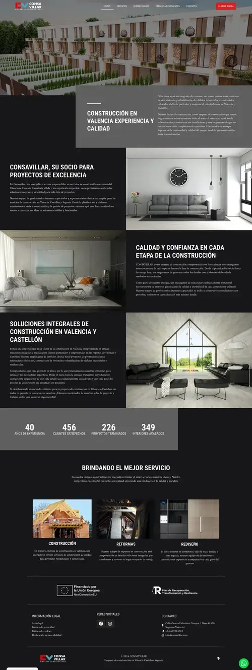 Desarrollo de una página web para una empresa de construcción y reformas, orientada a mostrar servicios y proyectos realizados. Web a medida, optimizada para SEO y pensada para generar confianza y captar nuevos clientes.