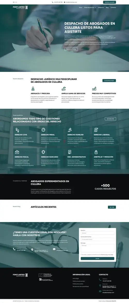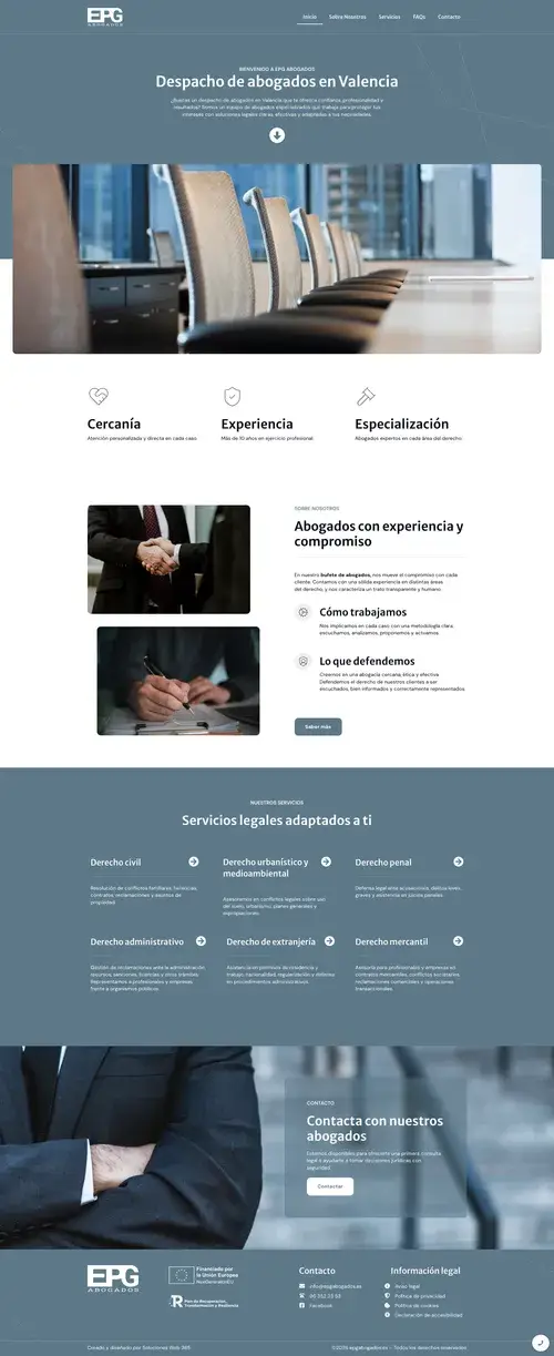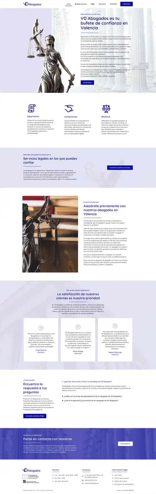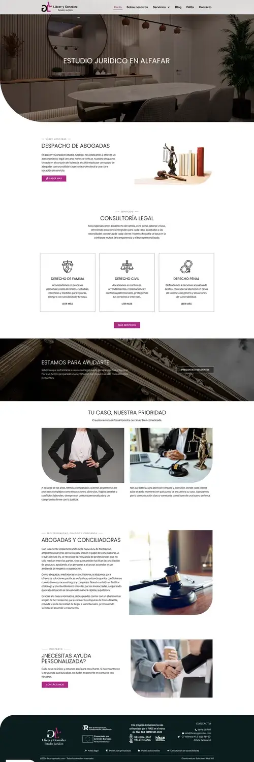 Desarrollo de una página web para despacho jurídico, con una estructura clara y enfocada a la visibilidad de servicios legales. Proyecto a medida, optimizado para SEO y pensado para reforzar la imagen profesional del bufete.