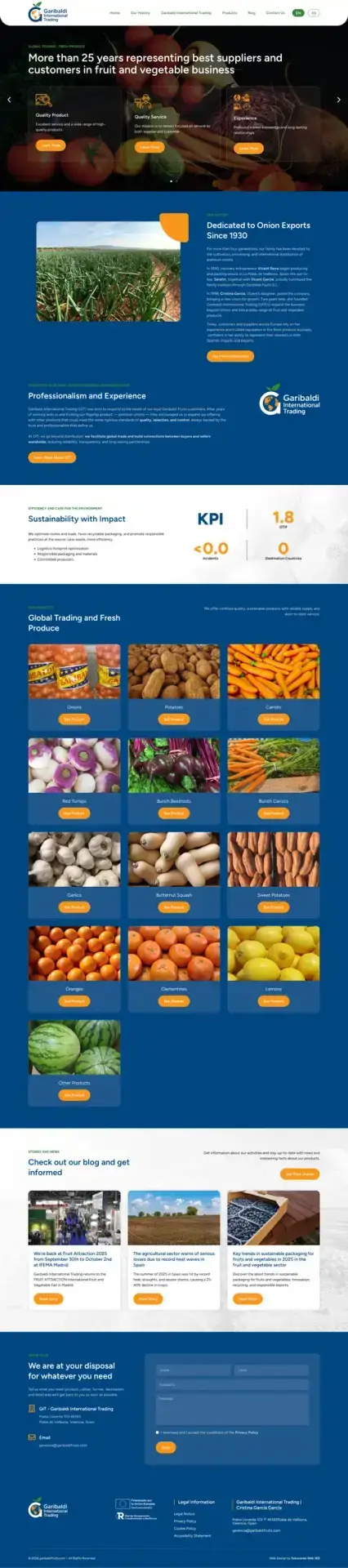 Diseño de una página web para un proveedor de frutas y verduras, orientada a presentar productos y servicios de distribución. Web corporativa, optimizada para SEO y pensada para generar confianza y captar nuevos clientes.