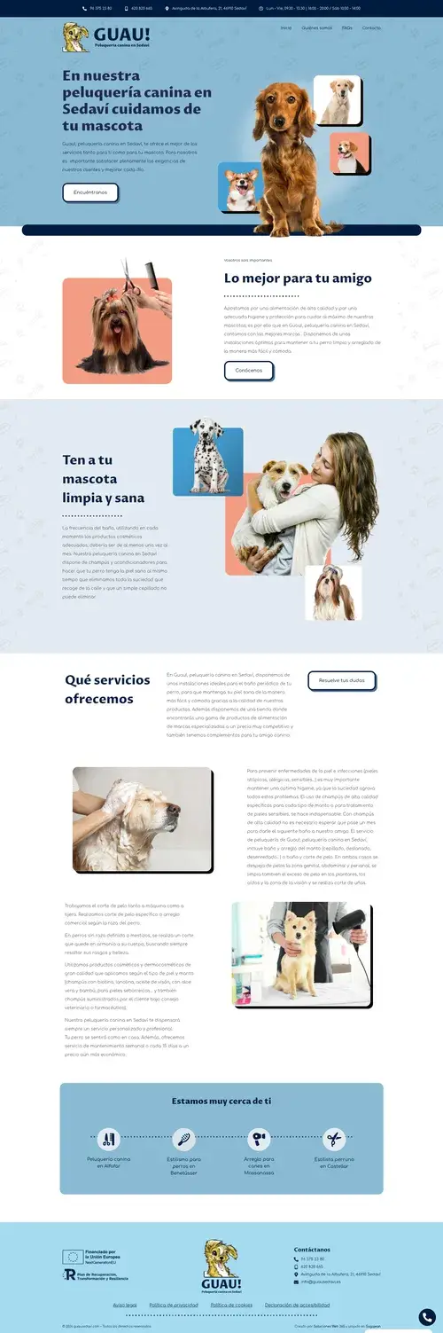 Desarrollo de una página web para una peluquería canina, orientada a mostrar servicios, precios y generar confianza entre los clientes. Web a medida, optimizada para SEO y pensada para facilitar el contacto y la captación de nuevos clientes.