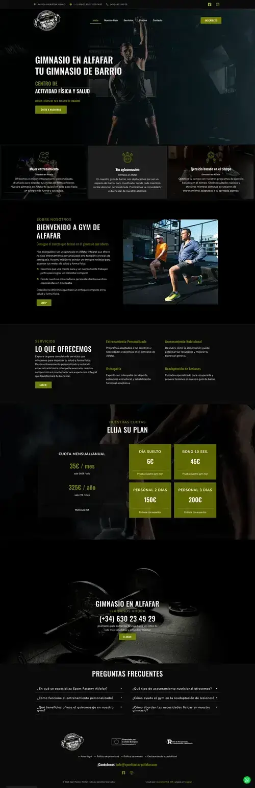 Desarrollo de una página web para un gimnasio, orientada a presentar servicios, clases y facilitar la captación de nuevos socios. Web a medida, optimizada para SEO y pensada para convertir visitas en inscripciones.