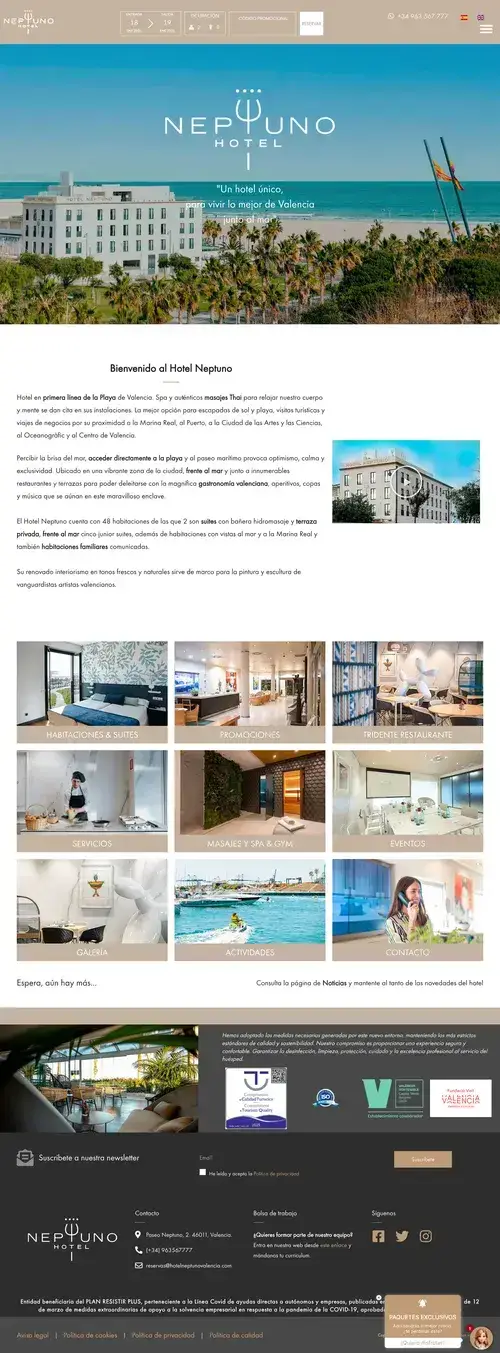 Creación de una página web corporativa para un hotel en Valencia, enfocada a presentar servicios, instalaciones y ubicación. Web profesional, optimizada para SEO y diseñada para mejorar la visibilidad online y las reservas.