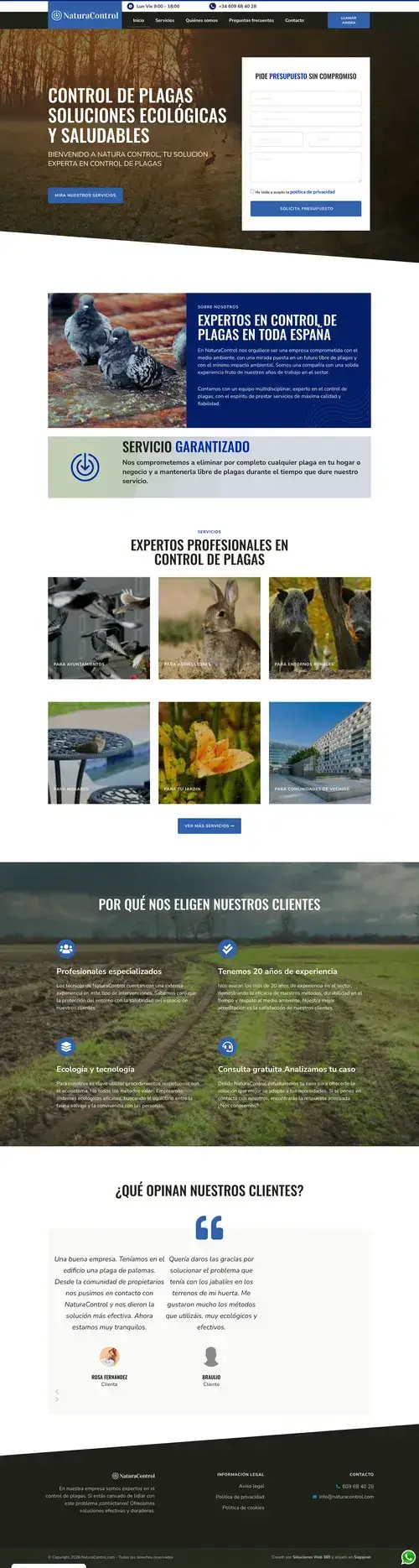 Diseño de una página web para una empresa de control de plagas, orientada a mostrar servicios y transmitir confianza. Web corporativa, optimizada para SEO y pensada para la captación de clientes.
