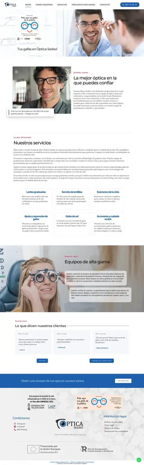 Creación de una página web para una óptica, enfocada a presentar servicios, marcas y facilitar el contacto con clientes. Web profesional, optimizada para SEO y diseñada para mejorar la visibilidad local.