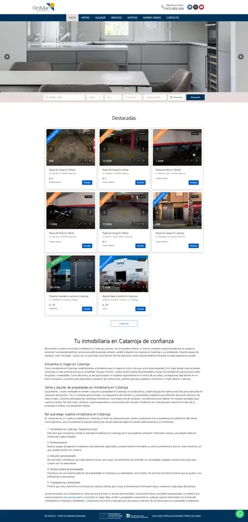 Diseño de un portal inmobiliario enfocado a la publicación de inmuebles y la captación de compradores y vendedores. Web a medida, optimizada para SEO y pensada para mejorar la visibilidad y el contacto.