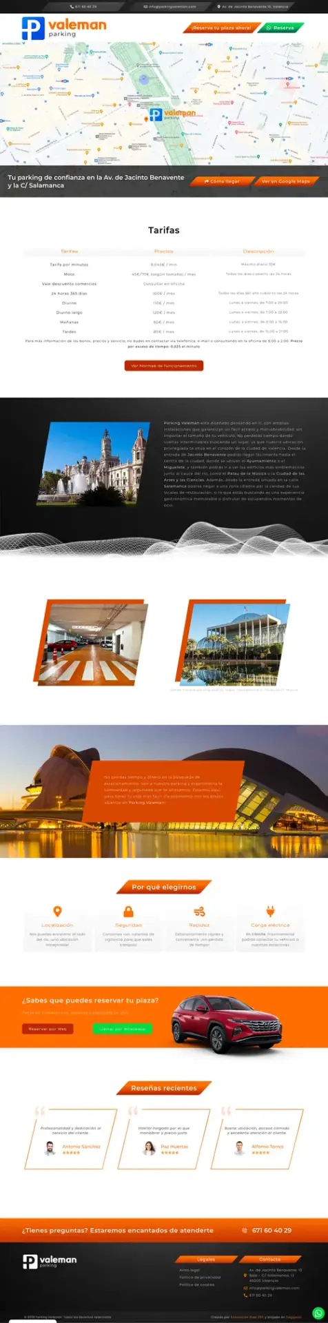 Diseño de una página web para una empresa de gestión de parking, orientada a mostrar servicios y facilitar la información al usuario. Web corporativa, optimizada para SEO y pensada para transmitir confianza y captar clientes.