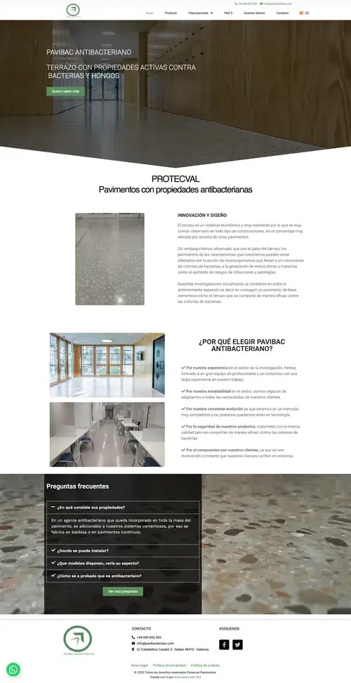 Desarrollo de una página web para un sistema de terrazo antibacteriano, orientada a explicar sus ventajas y aplicaciones. Web corporativa, optimizada para SEO y pensada para captar clientes del sector sanitario y profesional.