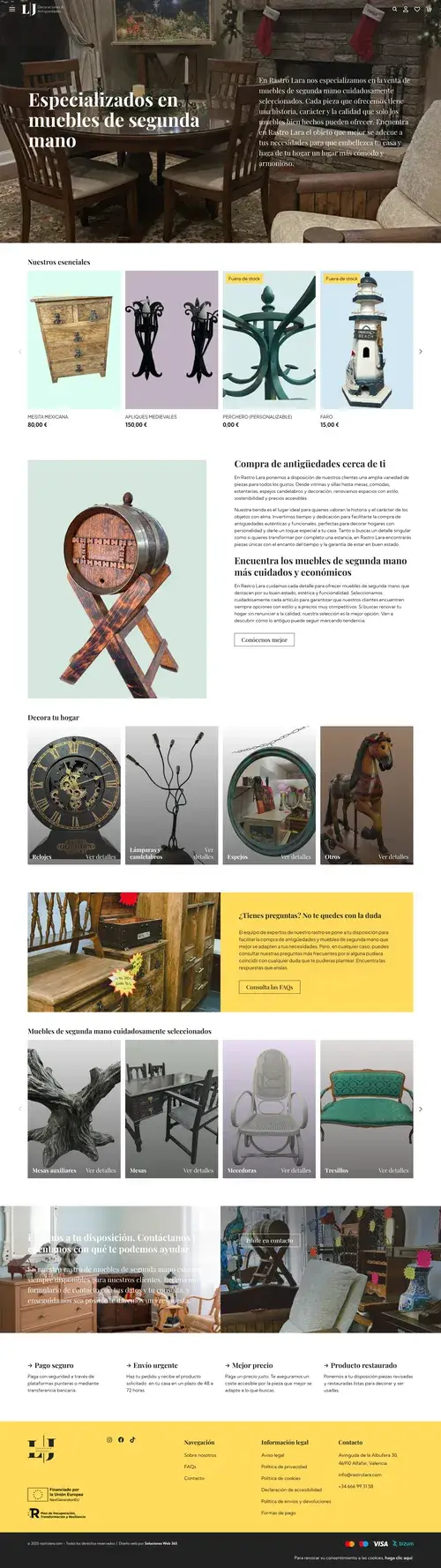 Creación de una página web para una tienda de artículos de segunda mano, enfocada a mostrar productos y facilitar el contacto o la compra. Web a medida, optimizada para SEO y diseñada para mejorar la visibilidad y las ventas.