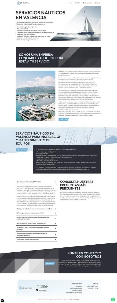 Creación de una página web para una empresa de servicios náuticos e instalaciones, orientada a mostrar servicios y generar confianza. Web corporativa, optimizada para SEO y diseñada para la captación de clientes.