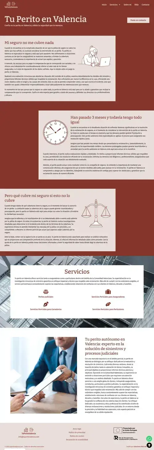 Creación de una página web para un perito profesional, enfocada a presentar servicios periciales y generar confianza. Web corporativa, optimizada para SEO y diseñada para facilitar el contacto con clientes.